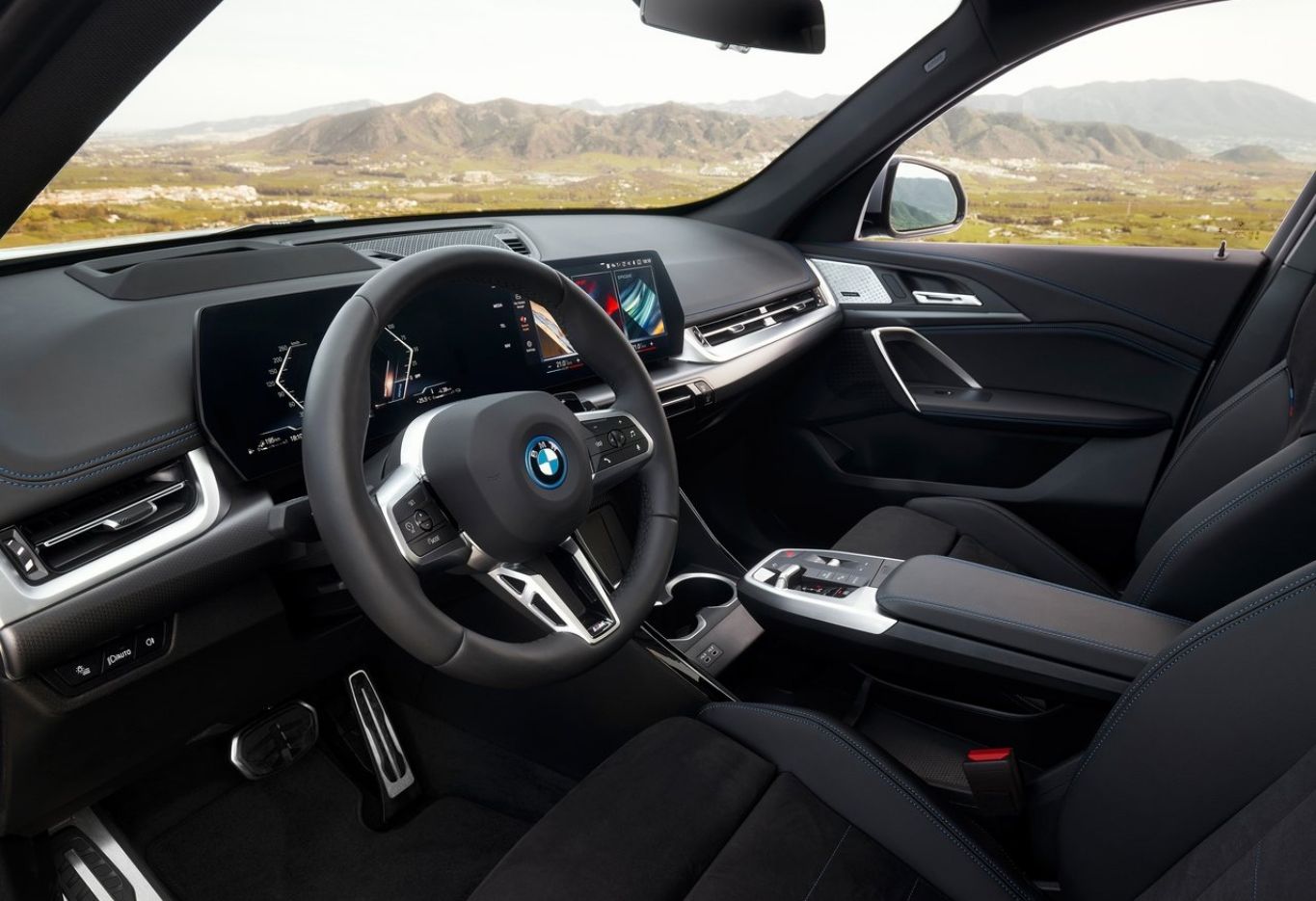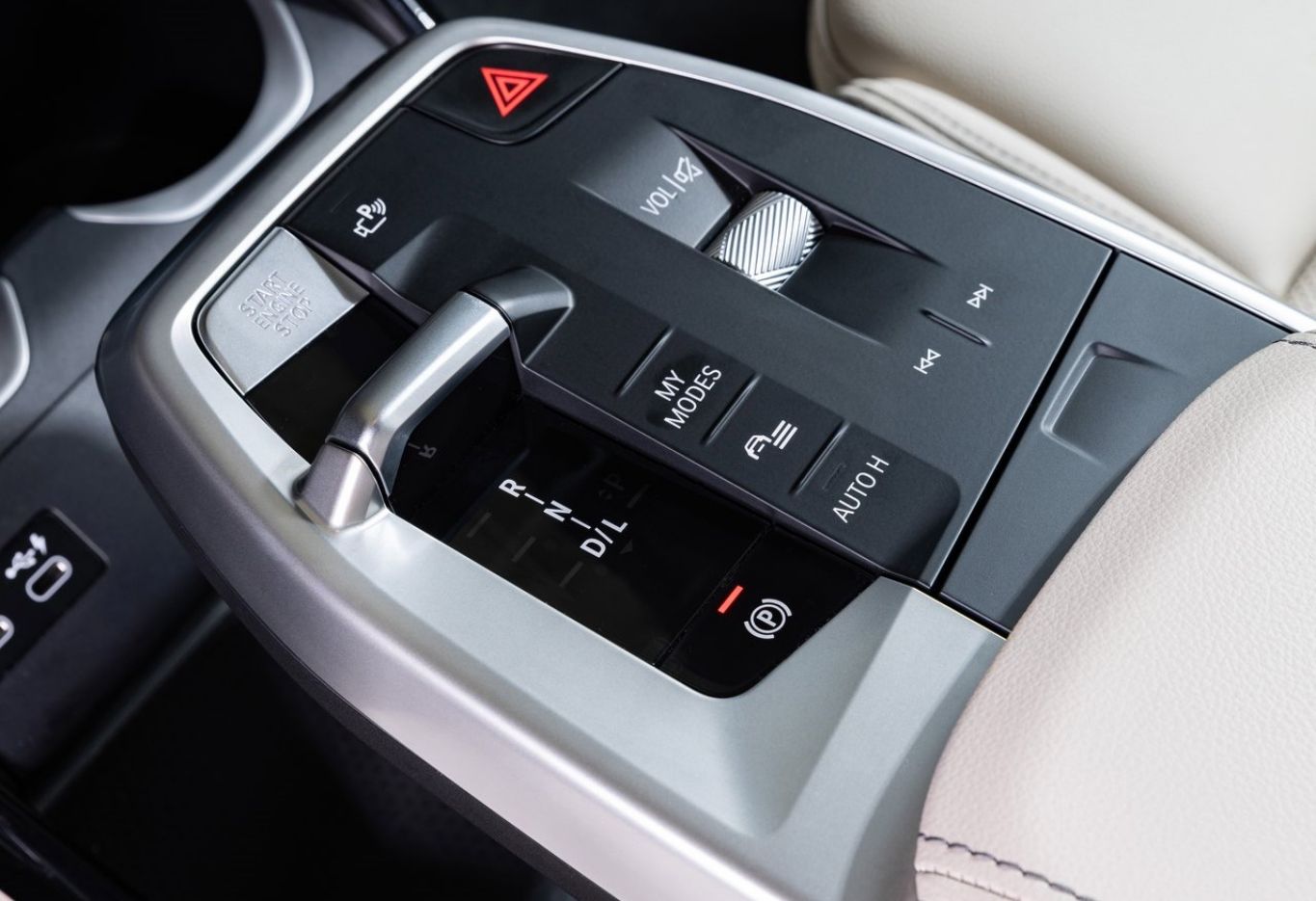 O console central é outro elemento inspirado no elétrico iX. A peça flutuante integra o botão seletor do câmbio, do freio de estacionamento eletrônico e do volume do rádio.