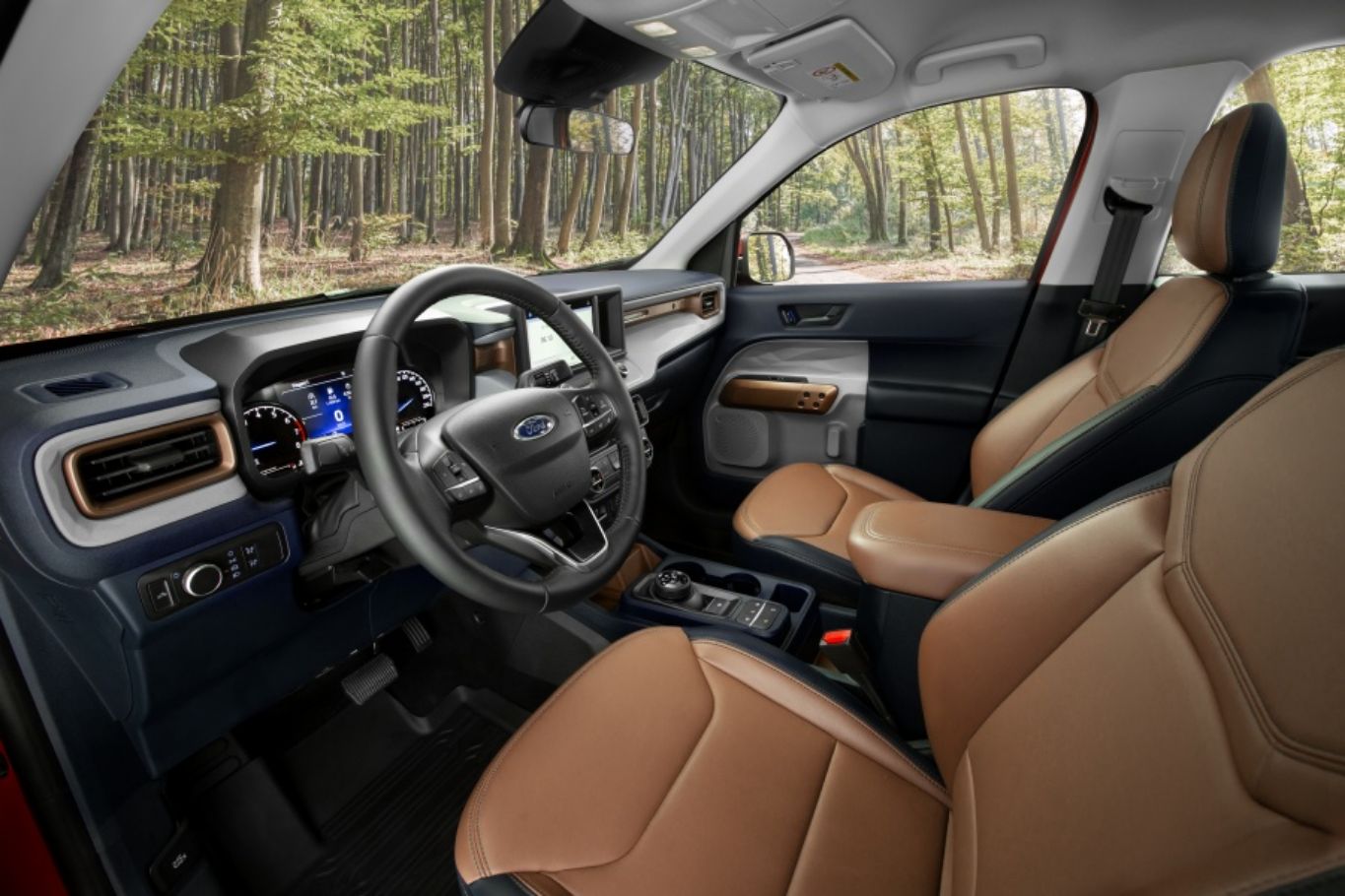 Sem opcionais, a Ford Maverick vendida no Brasil traz seis airbags, controles de estabilidade e tração, direção elétrica, freio de estacionamento elétrico, ar-condicionado automático digital de duas zonas, chave presencial, banco do motorista com regulagem elétrica e central multimídia com Android Auto e Apple CarPlay. Na parte de segurança ainda há frenagem autônoma emergencial e faróis de LED com acendimento e comutação automáticos do facho alto.